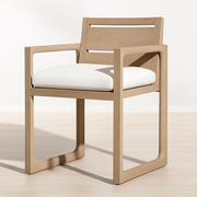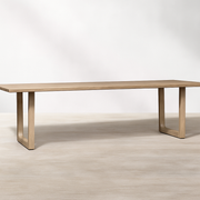 The Solenne Atelier Aeris 9-Piece Teak Outdoor Dining Set brings gallery-grade design to open-air living. Crafted from kiln-dried, FSC® teak with softly radiused edges and sculptural U-frame legs, the ensemble includes a long dining table and eight armchairs with performance cushions. Finished in a marine-grade seal, it balances warm wood tones with minimalist lines for a serene, high-end setting that elevates garden dinners and poolside gatherings alike.