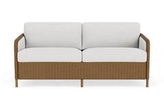 Finish: French beige Upholstery color: Beach Navy Size: 2 Cushion Sofa