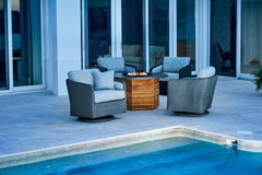 The Visions line is an innovation in Lloyd Loom wicker that uses a new upholstering approach to create a chic silhouette. Clean lines, moderate scale seating, and cushioned inset panels create a stunning modern profile.